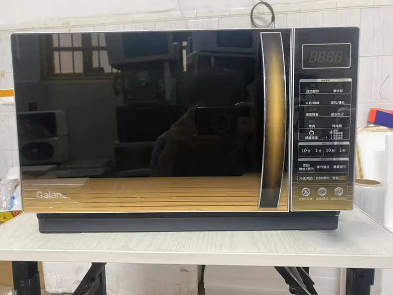 行情不好在多家民宿关店,共有十几台这款二手微波炉,都请保洁阿姨清洗干净做完消毒了,机器状况良好无故障,格兰仕无盘平板设计,好清洁,偶尔用湿抹布抹下就行,按键操作多功能,简单耐用。集微蒸烤煮功能于一体,早上蒸鸡蛋烤面包做营养早餐很方便,可以烤肉蒸鱼,做蛋挞,热菜饭牛奶咖啡都很快,家里宿舍都能用,经济实惠。